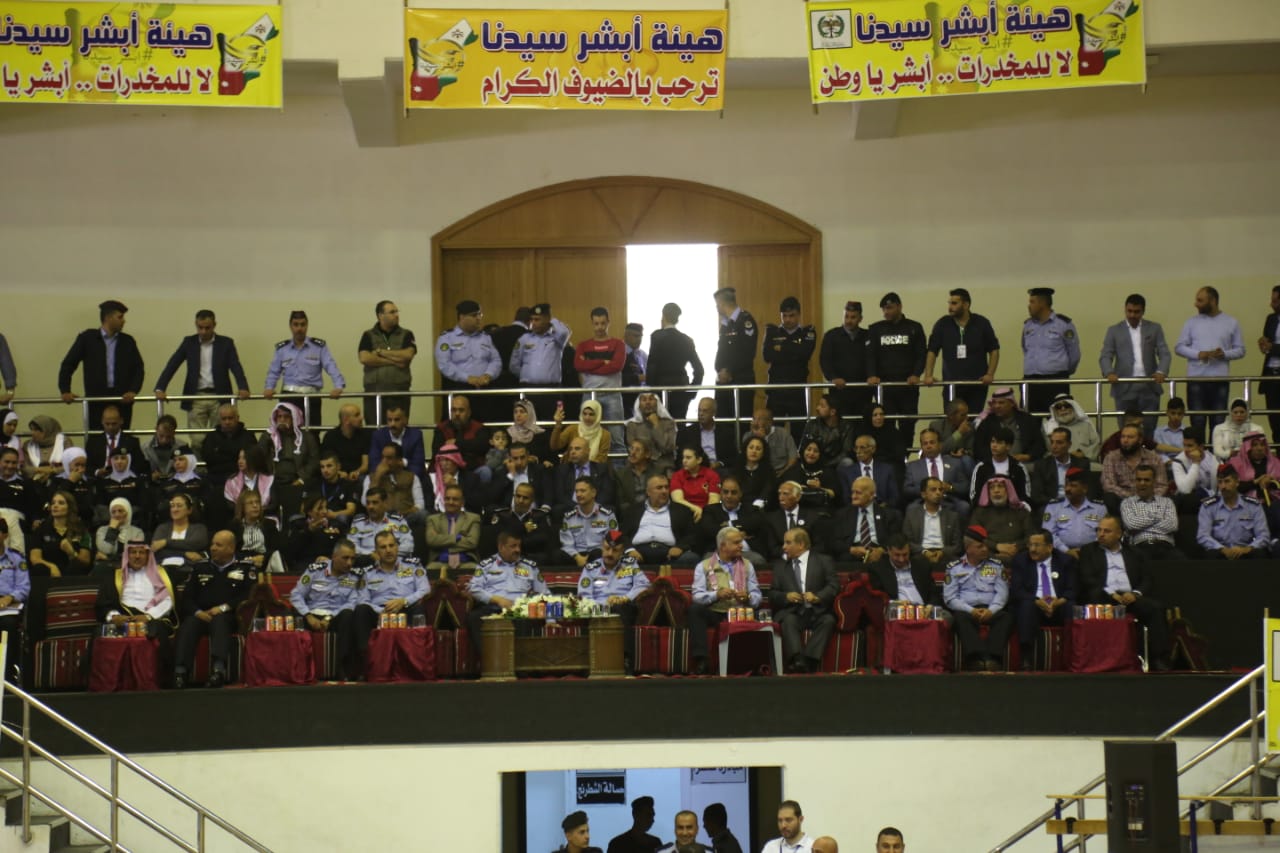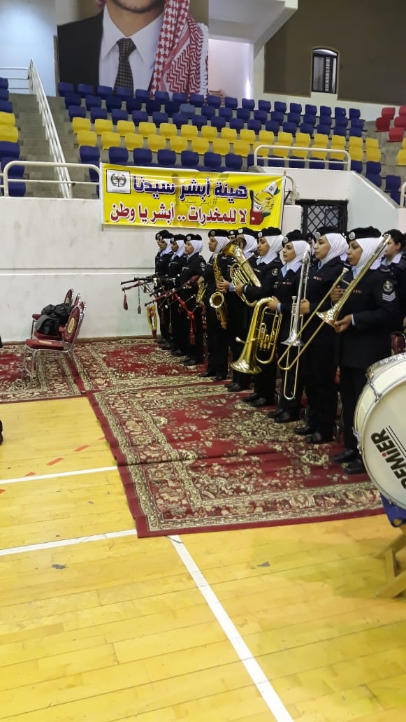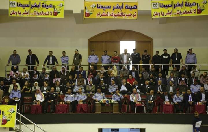 مندوباً عن مدير الأمن العام اللواء فاضل الحمود رعى مساعد مدير الأمن العام للمرور العميد زياد باكير اليوم الخميس في مدينه الملك عبدالله الرياضية المسيرة والمهرجان الخطابي لا للمخدرات ابشر ياوطن بالتعاون مع مديرية الامن العام / إدارة مكافحه المخدرات بحضور مساعد مدير الأمن العام للامن الجنائي العميد خالد العجرمي وعدد من كبار ضباط الامن العام ومؤسسات المجتمع المدني والمحلي