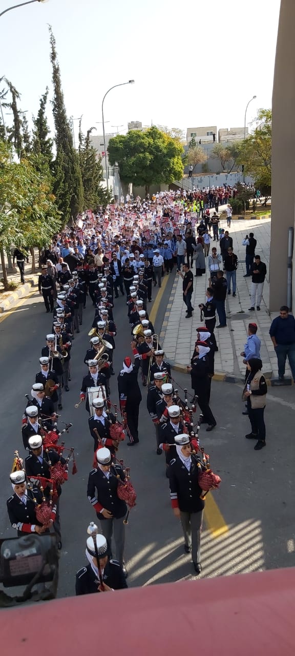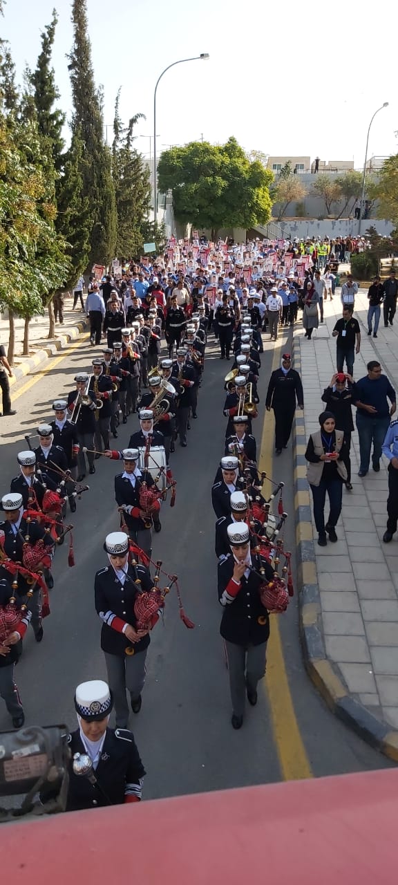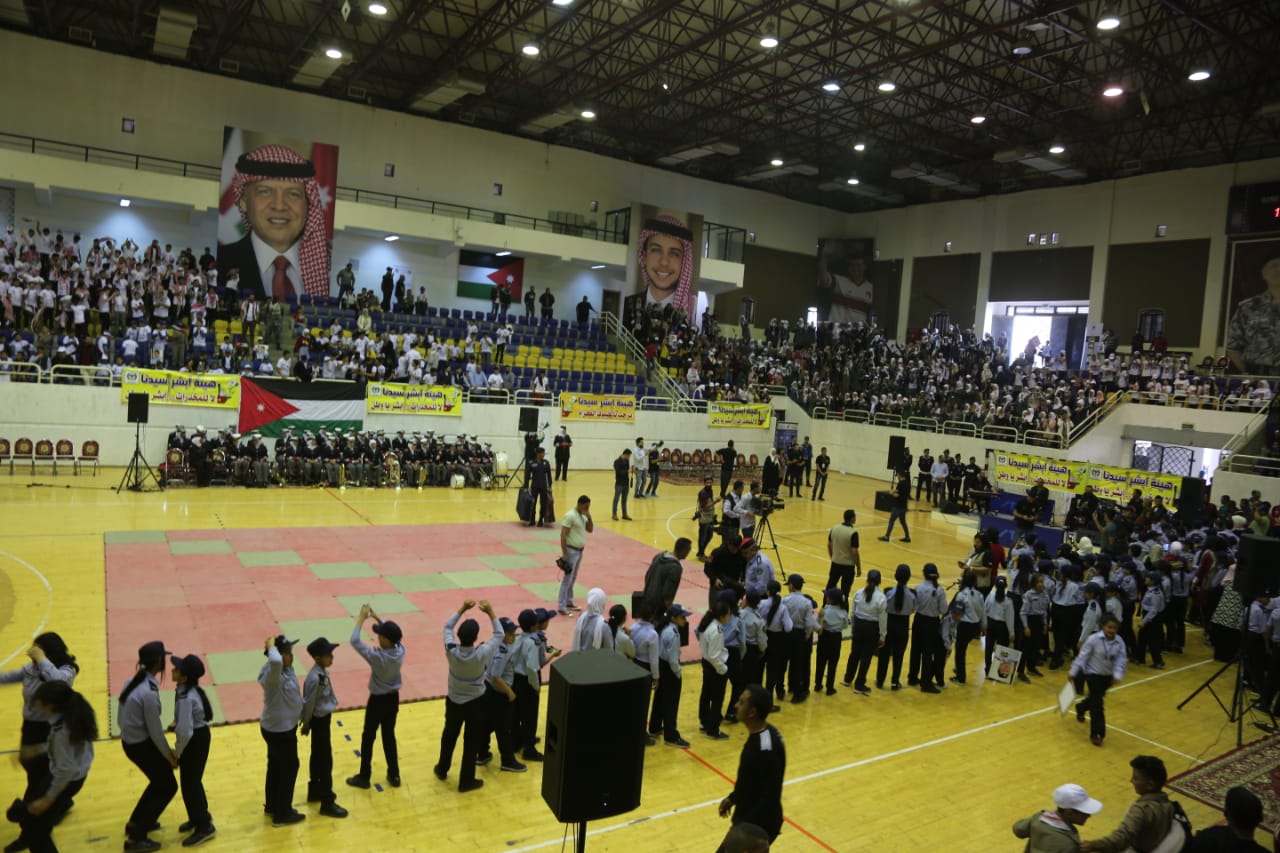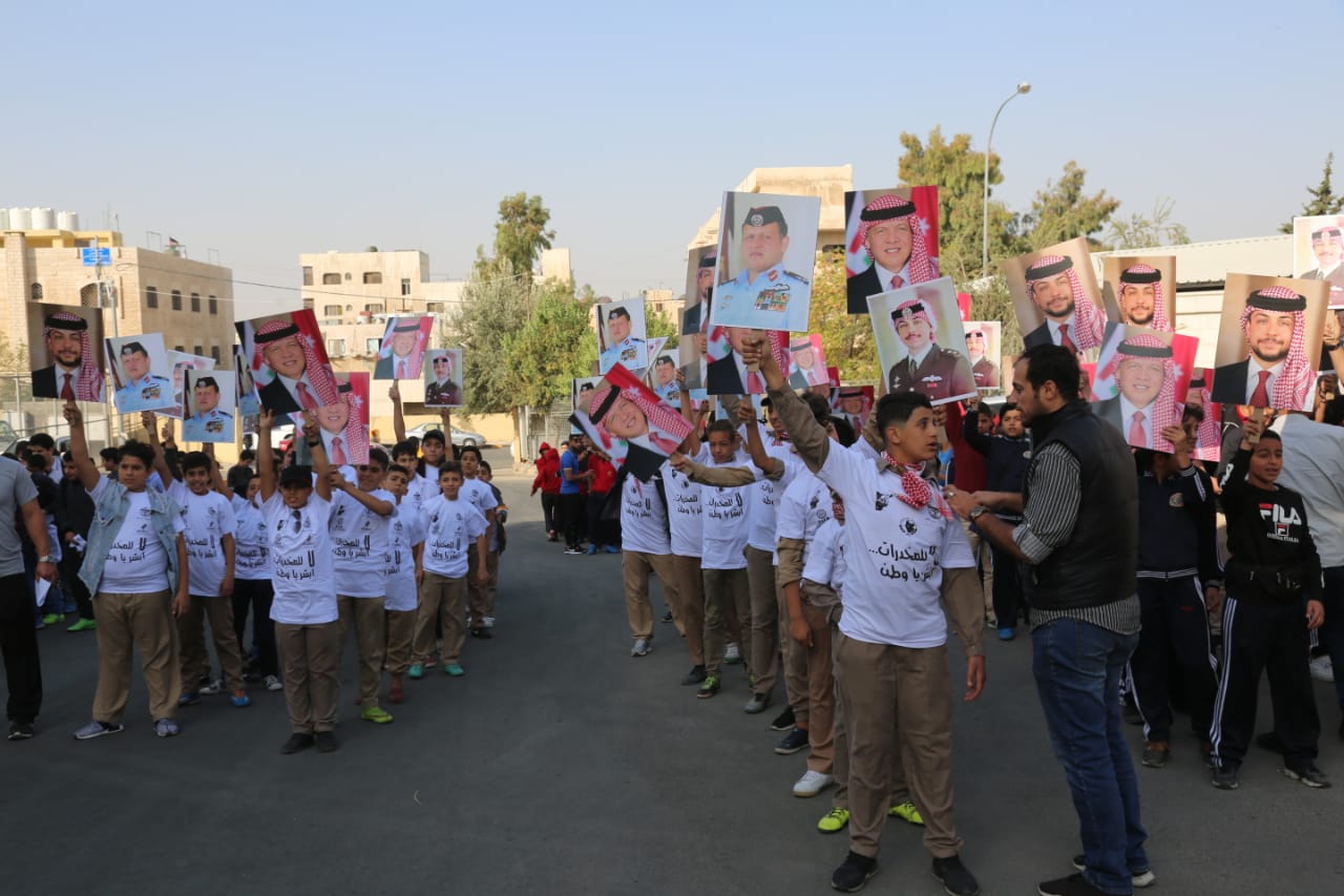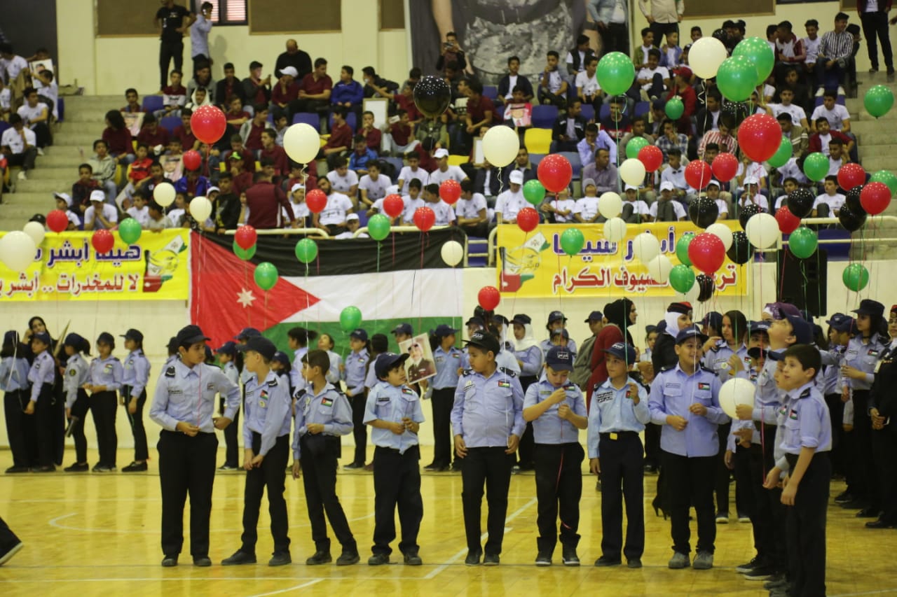 حيث اشتمل الاحتفال على مسيرة بمشاركة عدد من مدارس وزارة التربية والتعليم وطلبه الجامعات والأندية والمراكز الشبابية بالاضافه إلى عدد من الفقرات الفنية والقصائد الشعرية والعروض الفنية والموسيقية التي قدمتها مديرية الامن العام.