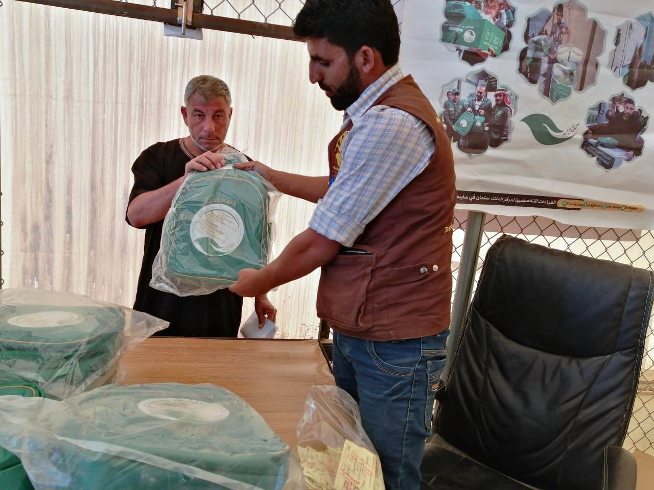 يستمر مركز الملك سلمان للإغاثة والأعمال الإنسانية / فرع الاردن بتوزيع الحقائب المدرسية والادوات القرطاسية على الطلاب والطالبات السوريين في مخيم الازرق واصلاً لمحطته الثالثة هناك حيث بلغ عدد الطلاب المستفيدين 2240 ضمن 6 مدارس .