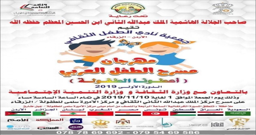 اختتمت اليوم الأحد، فعاليات مهرجان مسرح الطفل العربي "أعطونا الطفولة" في دورته الأولى في مركز الملك عبد الله الثاني الثقافي، بحضور محافظ الزرقاء الدكتور محمد السميران.