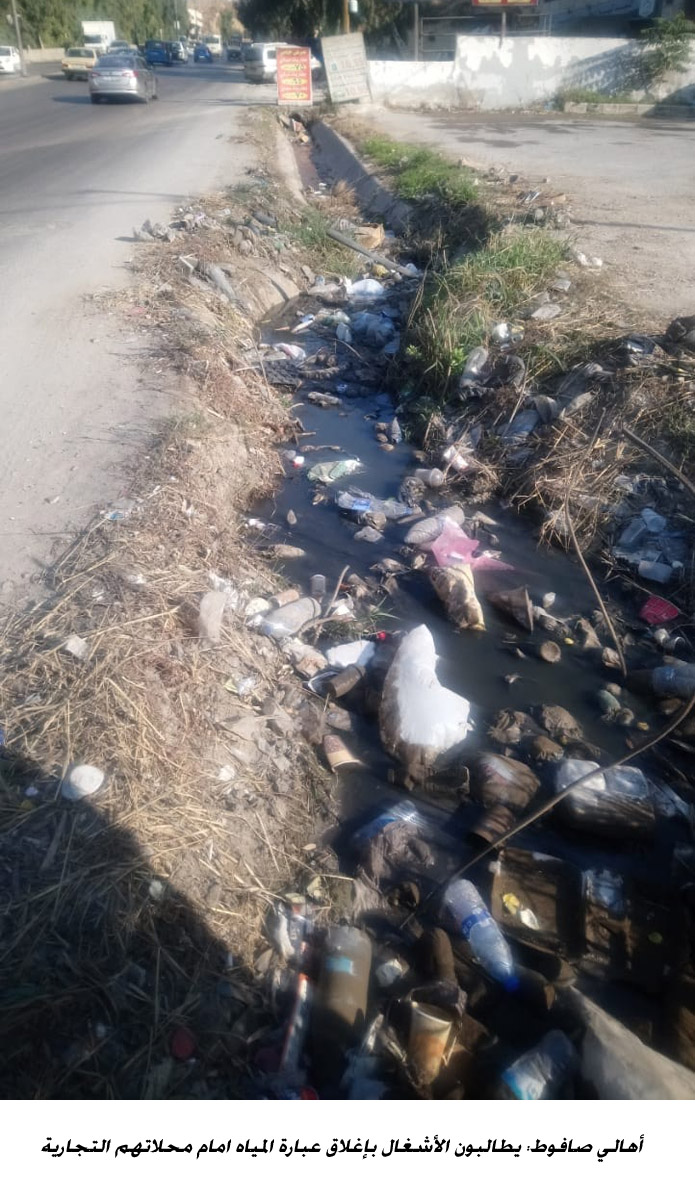 واشار مدير منطقة صافوط التابعة لبلدية عين الباشا الكبرى معاوية الفاعوري إلى وجود شكاوى من المواطنين، حول تراكم النفايات في عبارة المياه الواقع أمام محلاتهم على الشارع المذكور من اختصاص وزارة الاشغال العامة والاسكان.