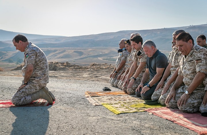 وفي الجانب الاقليمي، فالعدو الوحيد والمشترك بين جميع الدول والشعوب العربية والاسلامية منذ الاف السنين هو الكيان الصهيوني اليهودي المحتل، وفي صلاة الملك اليوم رسالة لكل الشعوب العربية والاسلامية انه وبرغم انفتاحه على الغرب وتعلمه ودراسته في الخارج الا انه سيبقى القائد العسكري العربي المسلم الذي لم ولن يتأثر بثقافتهم وضغوطهم وحربهم ضد الاسلام والمسلمين، ولم يهتز ايمانه المطلق بعقيدته الاسلامية وايمانه بالله ورسوله.
