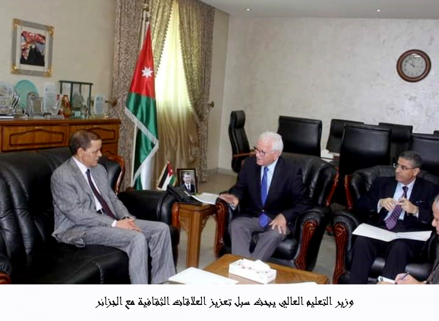 - بحث وزير التعليم العالي والبحث العلمي الدكتور محي الدين توق لدى لقائه اليوم الأربعاء السفير الجزائري في عمان محمد بوروبة إعادة تفعيل البرنامج التنفيذي المشترك لتعزيز التبادل الثقافي بين البلدين بما يحفظ مصالح الطلبة الأردنيين الدارسين في الجامعات الجزائرية.