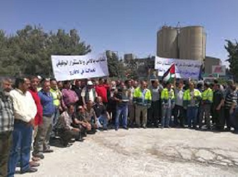 نفذ العشرات من العاملين في مصنع إسمنت الرشادية "لافارج"، اليوم الأربعاء، وقفة احتجاجية، رفضاً لقرار لمجلس إدارة شركة لافارج، يقضي بإنهاء خدمات 200 عامل في مصنعي الرشادية والفحيص.