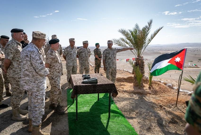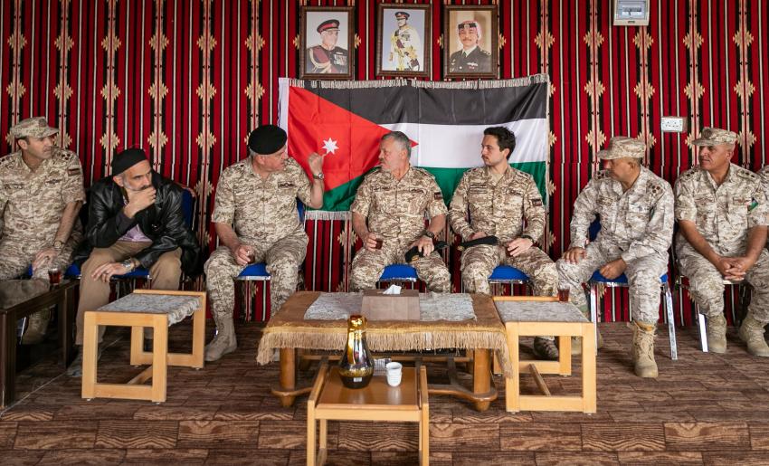 وكان في استقبال جلالته لدى وصوله، يرافقه أيضا سمو الأمير غازي بن محمد، كبير مستشاري جلالة الملك للشؤون الدينية والثقافية والمبعوث الشخصي لجلالته، رئيس هيئة الأركان المشتركة اللواء الركن يوسف أحمد الحنيطي، وعدد من كبار ضباط القوات المسلحة الأردنية - الجيش العربي.