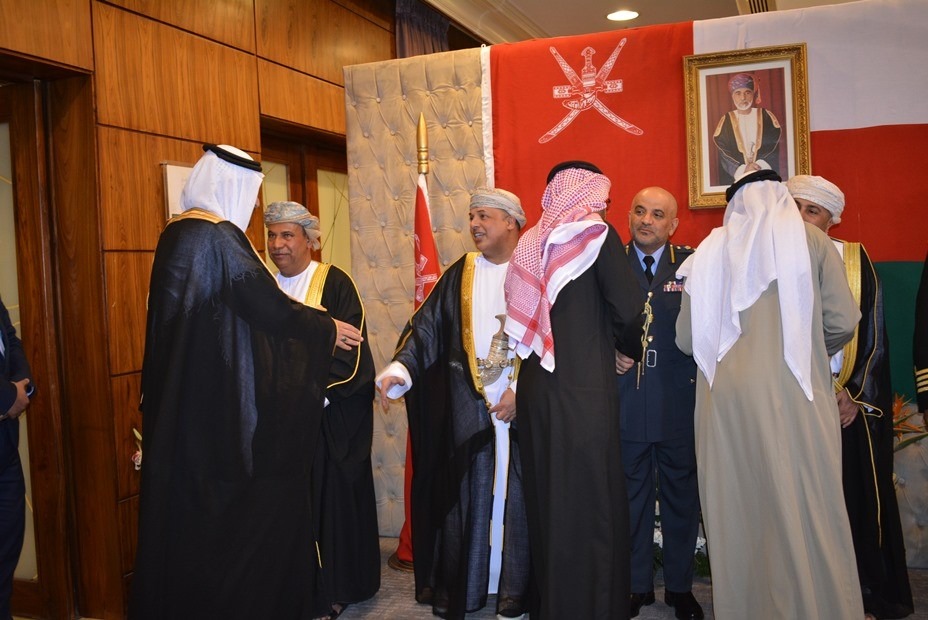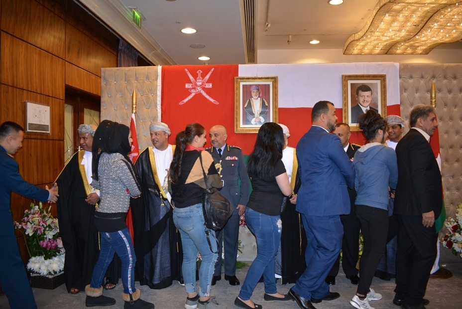 احتفلت سفارة سلطنة عمان مساء الثلاثاء في فندق الاردن ، احتفالا بمناسبة العيد الوطني التاسع والأربعين للسلطنة. ويشارك في الاحتفال الذي دعا إليه السفير خميس بن محمد بن عبدالله الفارسي سفير سلطنة عمان لدى الاردن ، عدد من الوزراء وكبار رجال الدول وسفراء الدول العربية والاجنبية.