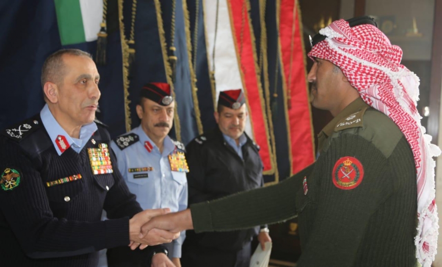 مدير الامن العام يكرم عددا من مرتبات سرايا الهجانة لجهودهم في انقاذ اربعة مواطنين سعوديين بعد ان جرفت السيول مركبتهم قبل ايام في منطقة الازرق ، وبحضور القائم باعمال السفير السعودي في المملكة .
