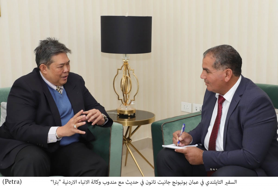 وفيما يتعلق بالتعاون الاقتصادي والتجاري بين البلدين، قال السفير، ان تايلند تحتل المركز الاول في رابطة امم جنوب شرق اسيا من حيث حجم التعاون الاقتصادي مع الاردن، مشيرا الى ان حجم التبادل التجاري بين البلدين يبلغ 130 مليون دينار اردني وهناك امكانية لزيادة هذا الرقم وهو ما يعمل عليه الطرفان الان.
