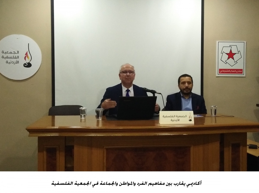 قارب أستاذ الأنثروبولوجيا في جامعة اليرموك الدكتور عبدالحكيم الحسبان في محاضرة ألقاها بعنوان "مقاربات أنثروبولوجية في الفرد والمواطن والجماعة"، مساء أمس الثلاثاء في مقر الجمعية الفلسفية الاردنية بعمان، بين مفاهيم الفرد والمواطن والجماعة من منظور انثروبولوجي.