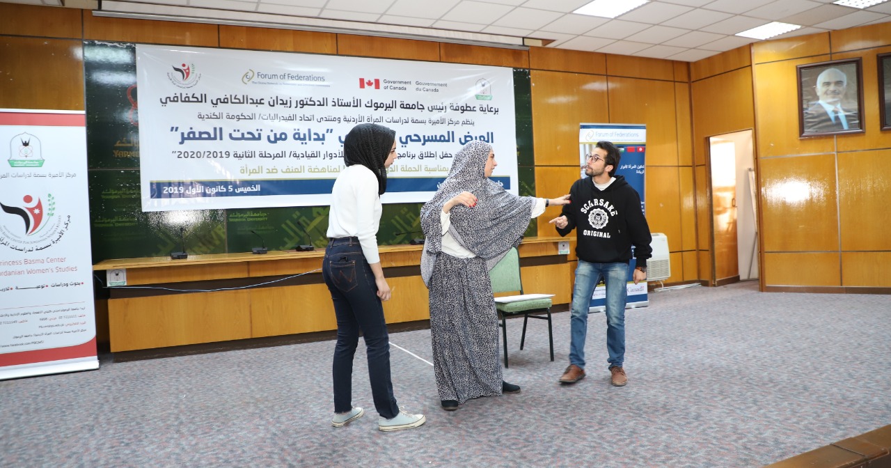 مندوبا عن رئيس جامعة اليرموك، رعى نائب رئيس جامعة اليرموك الدكتور فواز عبد الحق حفل إطلاق المرحلة الثانية 2019/2020 من برنامج "تمكين المرأة للأدوار القيادية"، الذي ينفذه مركز الأميرة بسمة لدراسات المرأة الأردنية، بالتعاون مع منتدى اتحاد الفيدراليات، وبدعم من الحكومة الكندية، حيث تضمن الحفل عرض مسرحي تفاعلي بعنوان "بداية من تحت الصفر"، وبالتزامن مع احتفالات المركز بالحملة الدولية 16 يوما لمناهضة العنف ضد المرأة.