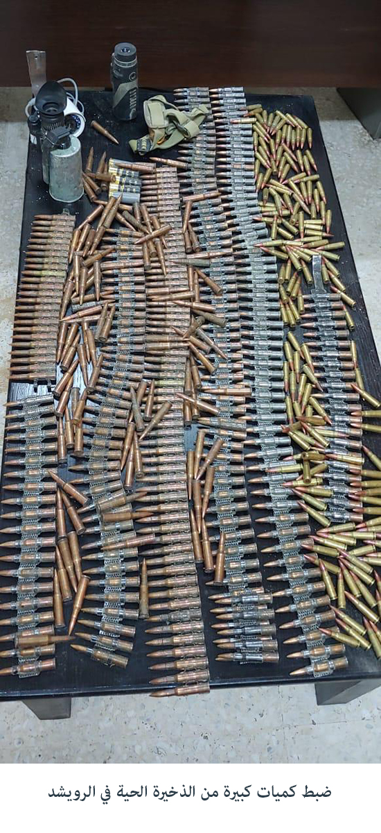 نبض البلد -ضبطت الاجهزة الامنية كميات كبيرة من الذخيرة الحية اثناء حملة امنية في منطقة الرويشد.