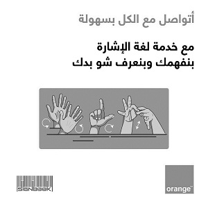قدمت Orange الأردن خدمة لغة الإشارة للأشخاص ذوي الإعاقة السمعية من خلال 11 معرضاًمن معارضها المنتشرة في أنحاء المملكة، تحت مظلّتها "قدراتنا مختلفة ولكنّ إمكانياتنا أكيدة"، وذلك عبر تقنية "Sign Book" التيتم تطويرها من قِبل شركة ناشئة انضمت للموسم السادس من برنامج Orange الأردن الموجّه لتسريع نمو اعمال الشركات الناشئة"BIG".