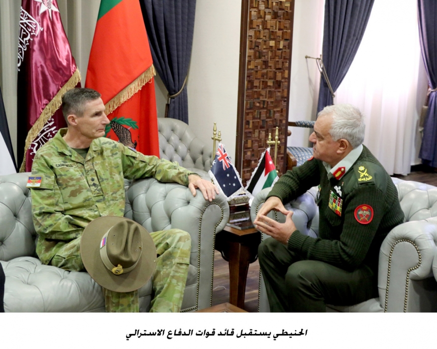 استقبل رئيس هيئة الأركان المشتركة اللواء الركن يوسف أحمد الحنيطي في مكتبه بالقيادة العامة اليوم الأحد، قائد قوات الدفاع الاسترالي الفريق أول كامبيل والوفد المرافق له.