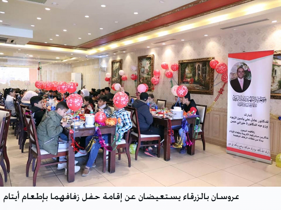استعاض عروسان في محافظة الزرقاء عن إقامة حفل زفاف تقليدي لهما، بإطعام 60 يتيما ويتيمة، نفذته جمعية الشهيد راشد الزيود للأعمال الخيرية والتنموية.