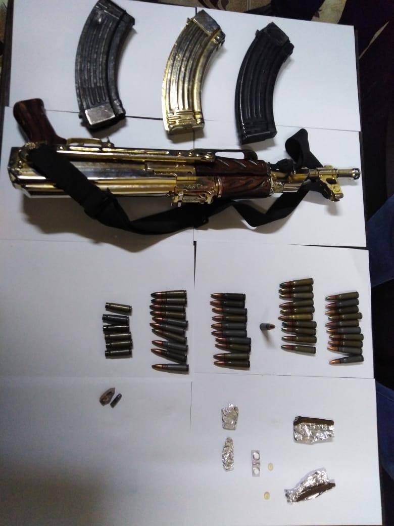 واضاف الناطق الاعلامي انه جرى على الفور تحرك قوة امنية من ادارة البحث الجنائي وادارة مكافحة المخدرات للمكان لمداهمة ذلك الشخص والقاء القبض عليه الا انه وفور مشاهدة القوة بادر باطلاق عيارات نارية باتجاههم من سلاح اوتوماتيكي بحوزته حيث تم التعامل معه واجباره على تسليم نفسه بعد محاصرته وضبط بحوزته سلاح ناري اوتوماتيكي وكمية من الذخيرة اضافة الى كمية من المواد المخدرة كما وجرى ضبط مركبتين مسروقتين وبوشرت التحقيقات .