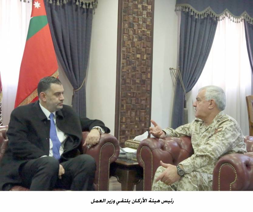 وجرى خلال اللقاء بحث سبل تطوير العمل المشترك بين القوات المسلحة الأردنية – الجيش العربي ووزارة العمل في برنامج التدريب الوطني "خدمة وطن" نظراً لأهمية هذا البرنامج الفعّال في تحقيق التنمية الوطنية الشاملة والمساهمة في الحد من مشكلة البطالة.