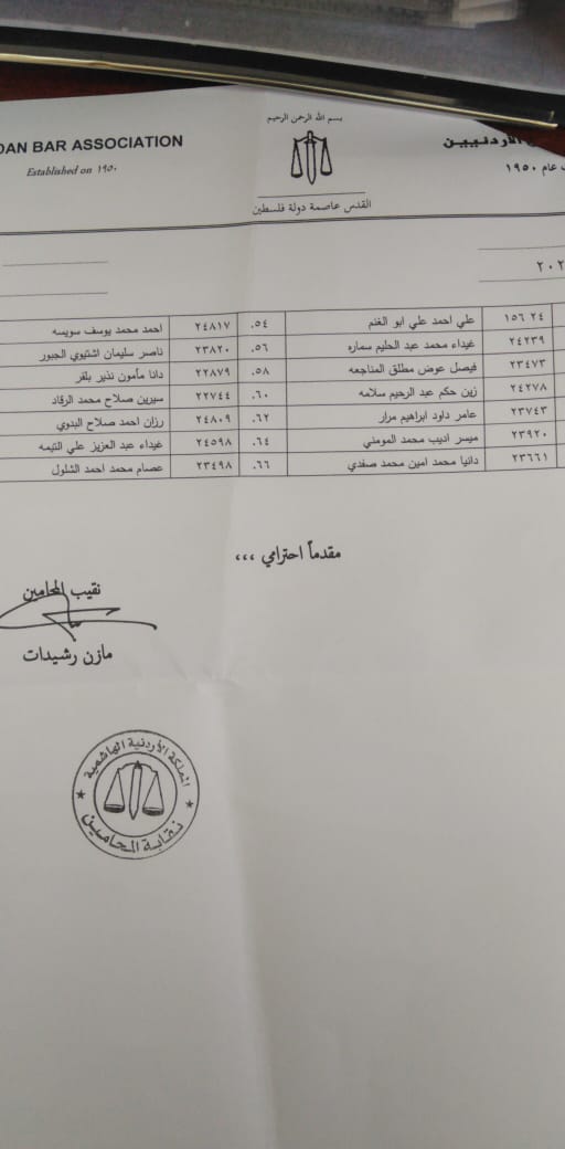 ادى "66" محامياً القسم القانوني اليوم الاربعاء أمام وزير العدل الدكتور بسام التلهوني بحضور نقيب المحامين مازن ارشيدات .