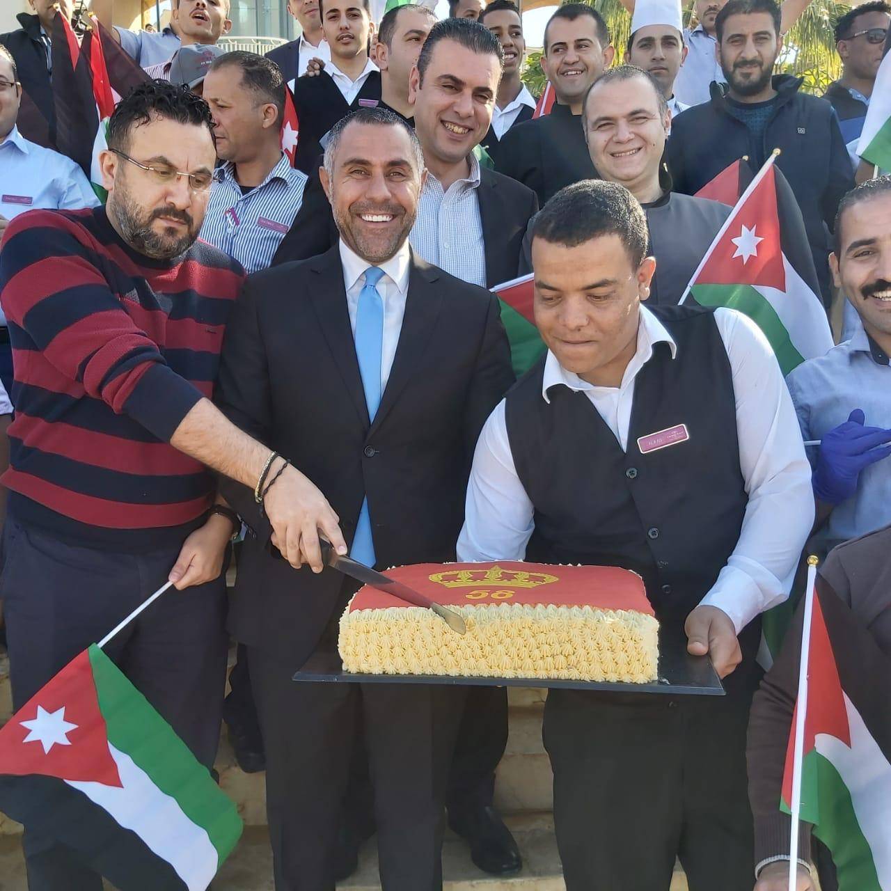 أما في "كراون بلازا" البحر الميت، فقد شهد الاحتفال حضوراً كبيراً من كافة طواقم الفندق الإدارية والفنية، الذين رفعوا بهذه المناسبة الميمونة بتاريخ المملكة، اجمل آيات التهنئة والتبريكات لجلالة القائد الأعلى، متمنياً له بدوام موفر الصحة والعافية، وأن يبقى ذخراً لشعبه ومحبيه حول العالم.
