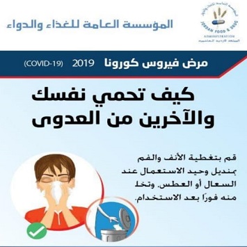أصدرت المؤسسة العامة للغذاء والدواء، رسائل توعوية للوقاية من فيروس كورونا. وتاليا الرسائل التوعوية كما نشرتها المؤسسة: