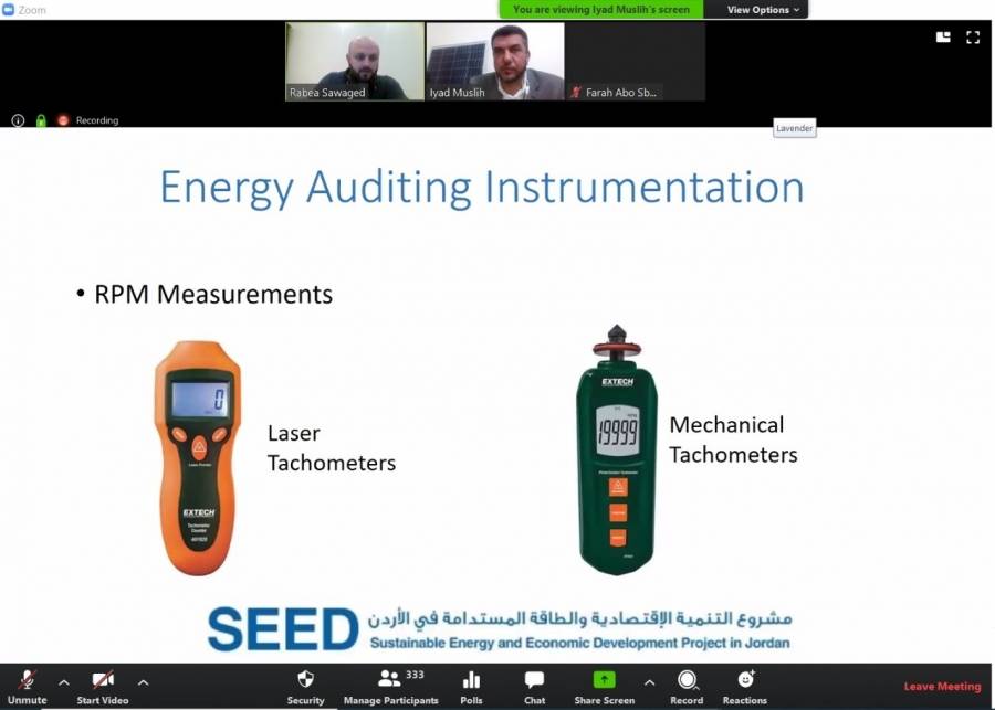 عقد مشروع التنمية الاقتصادية والطاقة المستدامة في الأردن SEED بالتعاون مع نقابة المهندسين الأردنيين - فرع عجلون دورة تدريبية بعنوان "أساسيات التدقيق الطاقي" عبر الانترنت بمشاركة 350 مهندسا ومهندسة من الاردن وفلسطين والعراق و المملكة العربية السعودية و الإمارات العربية المتحدة و الجزائر و السويد وكندا و أعضاء من جمعية البيئة الأردنية.