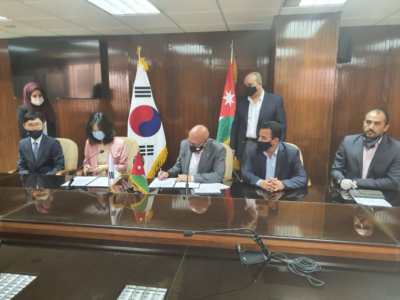 وقع وزير المياه والري المهندس رائد ابو السعود مذكرة تفاهم مع مديرة مكتب الوكالة الكورية للتعاون الدولي (KOICA) السيدة كيم هيوجين بحضور امين عام وزارة المياه والري المهندس علي صبح ونائب امين عام سلطة المياه فراس العزام ومساعد الأمين العام المياه م. مفيد اللوزي والمساعدة للاعلام عمر سلامة ومدير مياه محافظة الكرك م. صدام الحروب والسيد يو ايك نائب مدير الوكالة والاء البقاعي منسقة برنامج الوكالة لتمويل مشروع تحدسين وتحديث شبكات منطقة فقوع في محافظة الكرك بقيمة (9,7) مليون دولار ممولة كمنحة بنسبة (100%) من الوكالة الكورية .