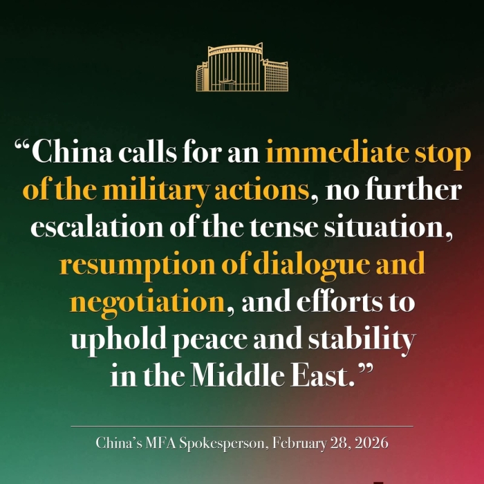 الصين تدعو إلى وقف فوري للتصعيد العسكري واحترام سيادة إيران