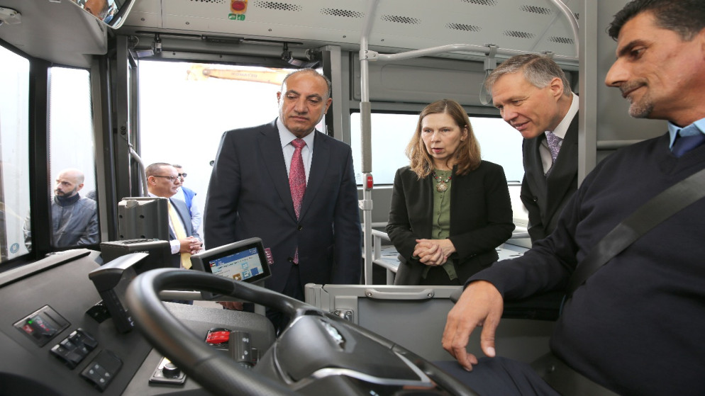 الشواربة يتفقد التشغيل التجريبي للحافلات الكهربائية في عمّان