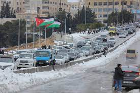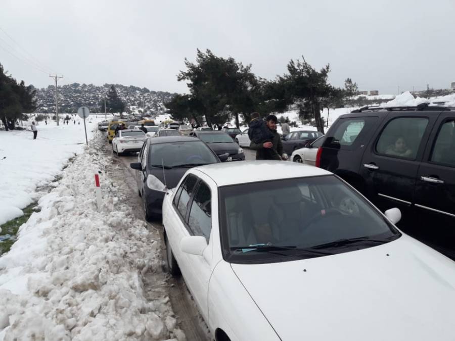 أرتال من المركبات تغلق طريق إربد عجلون بحثا عن متعة اللعب بالثلج
