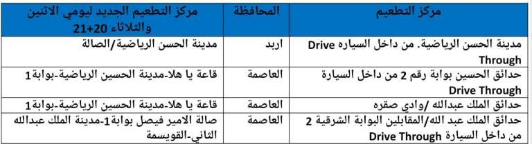 نقل مواعيد مراكز التطعيم من داخل السيارة في عمان واربد يومي الاثنين والثلاثاء