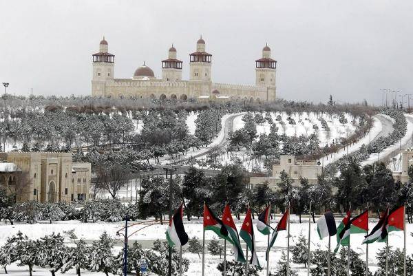تراكمات ثلجية فوق مرتفعات 1300 متر وزخات في عمّان الاثنين