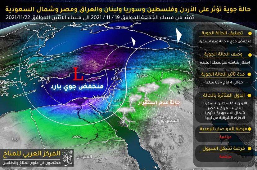 أمطار في اغلب المناطق ابتداءً من الجمعة وحتى الأحد