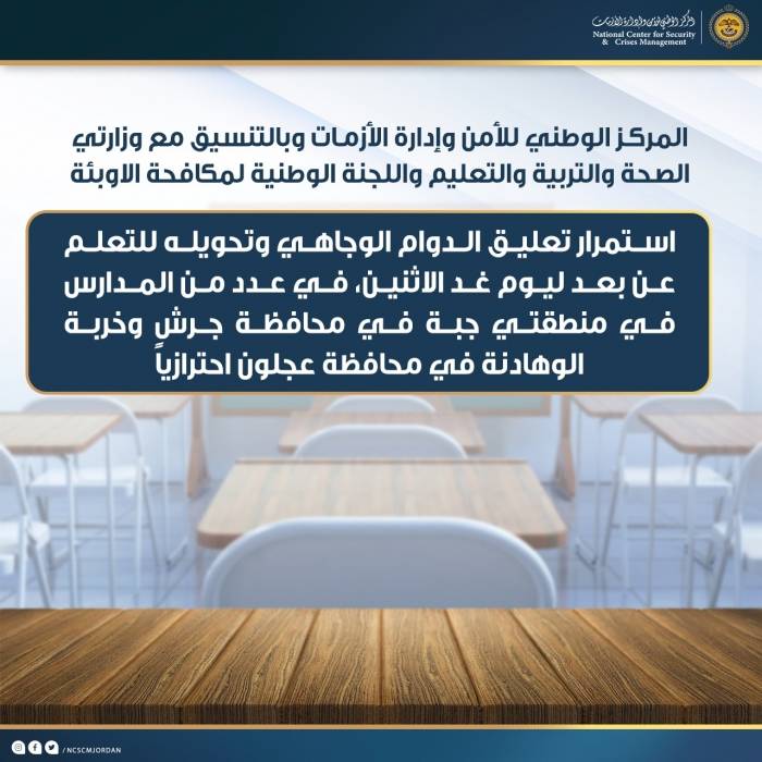 استمرار تعليق الدوام في بعض مدارس جرش وعجلون غدا