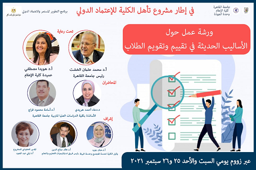 الاساليب الحديثة في تقييم وتقويم الطلاب في جامعات الجيل الرابع ورشة عمل بكلية الإعلام في جامعة القاهرة.