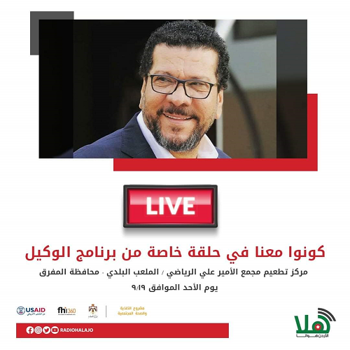 تغطية مباشرة لبرنامج الوكيل على "راديو هلا" الأحد القادم من مركز التطعيم في مجمع الأمير علي الرياضي