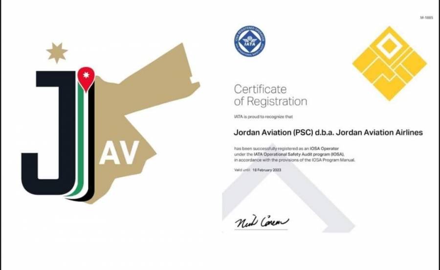 الأردنية للطيران تحصل على شهادة (IOSA) للمرة الثامنة