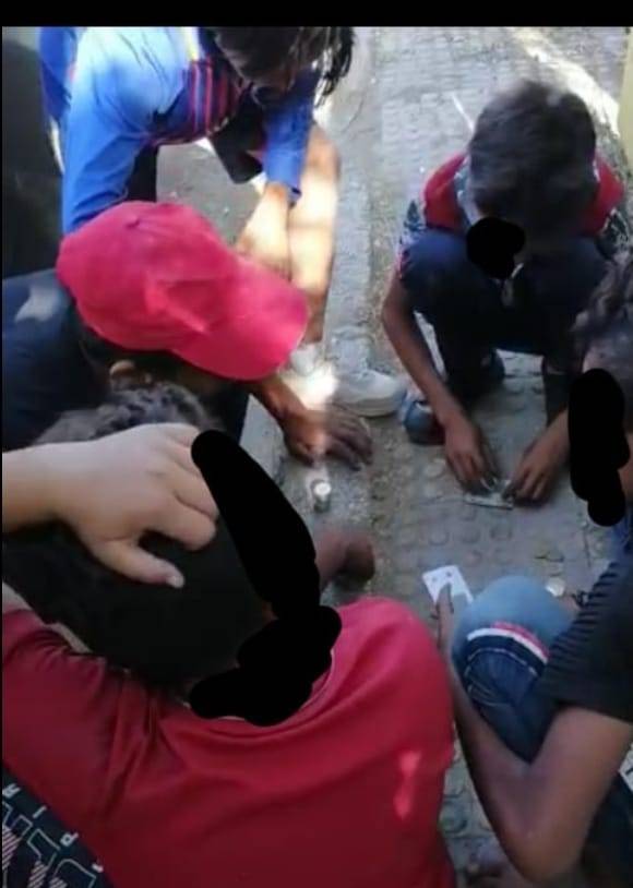 ضبط أحداث متسولين يمارسون القمار بعد الانتهاء من عمليات التسول .