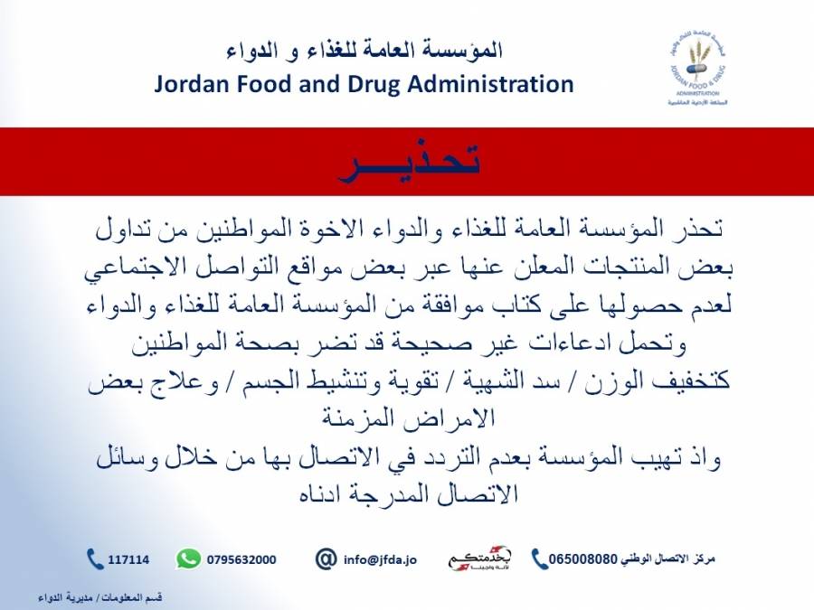 الغذاء والدواء تحذر من تداول بعض المستحضرات غير المجازة المعلن عنها عبر مواقع التواصل الاجتماعي