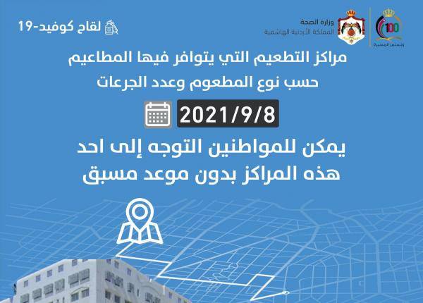 مراكز تطعيم كورونا وفق أنواع اللقاحات الاربعاء (اسماء)