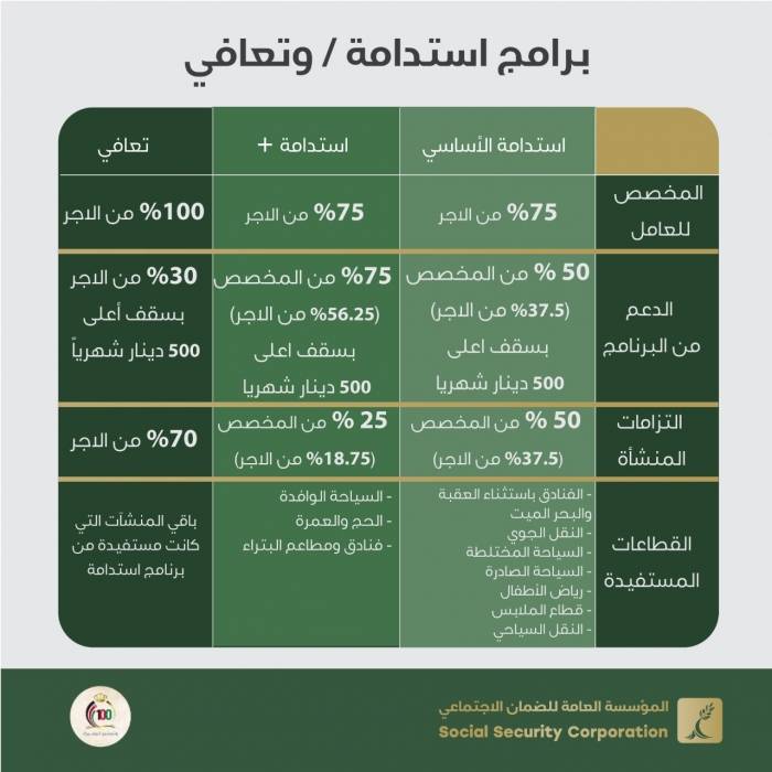الضمان الاجتمـاعـي يحدد الأنشـطـة المشـمولـة ببرامج "اسـتـدامـة" و"اسـتدامـة+" و"تـعـافـي"