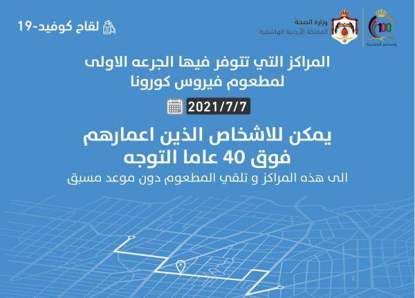 مراكز تطعيم من تجاوز 40 عاما دون موعد مسبق (اسماء)