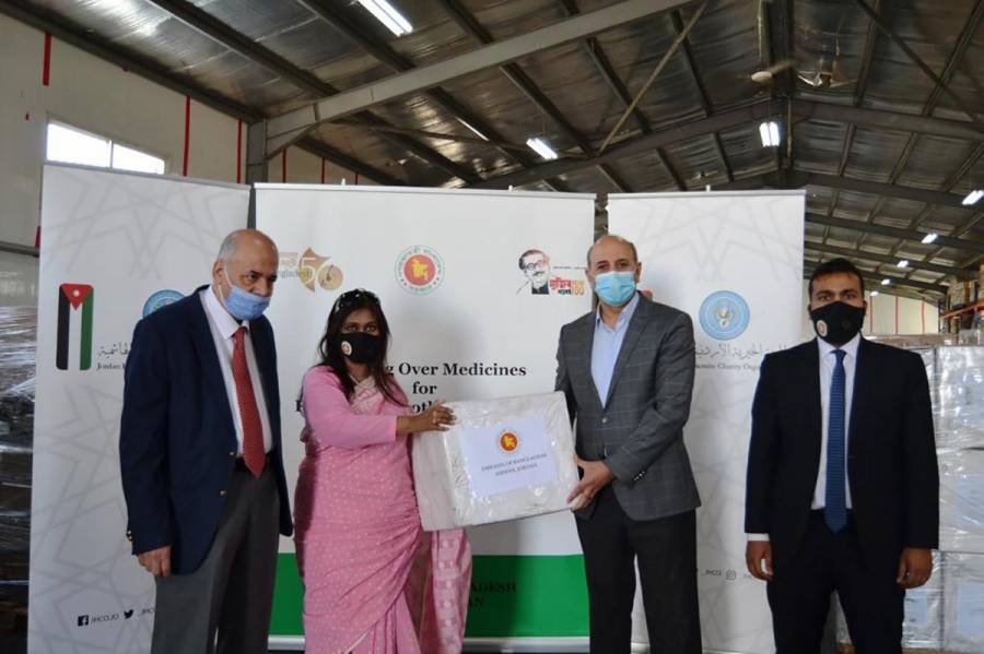 الهيئة الهاشمية تتسلم مساعدات طبية بنغالية مقدمة للشعب الفلسطيني