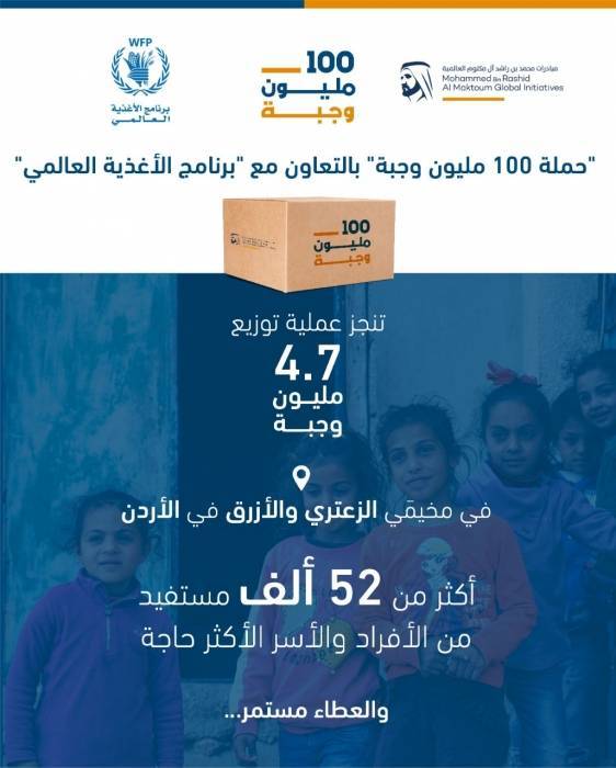 الأردن يشهد توزيع 4.7 مليون وجبة للاجئين ضمن "حملة 100 مليون وجبة"