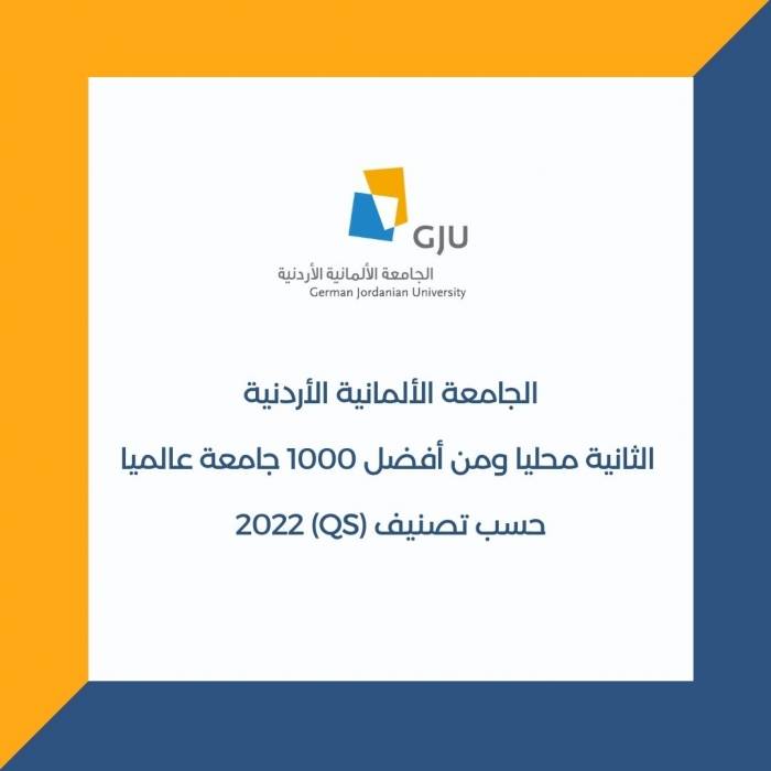 • الجامعة الألمانية الأردنية الثانية محليا ومن أفضل 1000 جامعة عالميا حسب تصنيف (QS) 2022