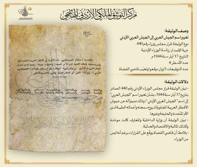 • عرض وثيقة صادرة بتاريخ 1944 بمناسبة عيد الجيش