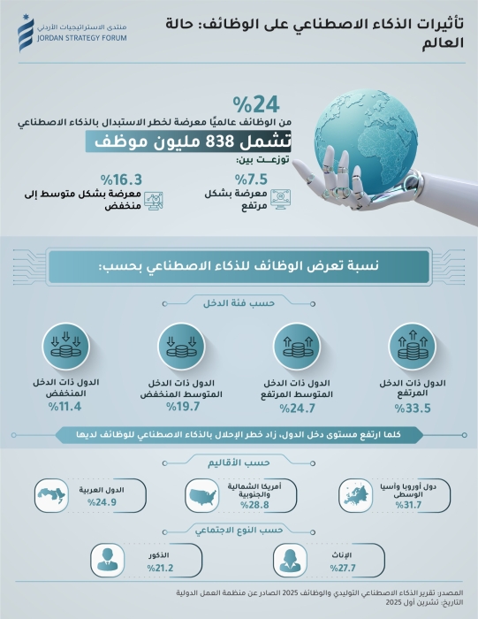 • ثلث العمالة الأردنية من المتوقع أن تتأثر بشكل متوسط بتطورات الذكاء الاصطناعي