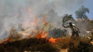 الدفاع المدني يواصل اخماد حريق شب بأراض زراعية في الكورة