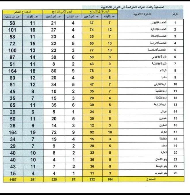 المستقلة للانتخاب: ( 251) قائمة اجمالي القوائم المترشحة نهاية دوام اليوم الثاني للترشح
