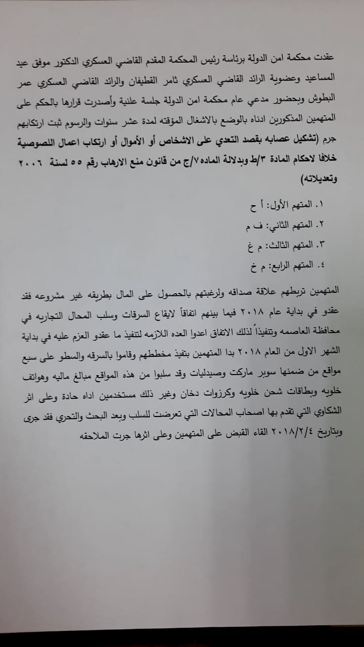 الحكم بـ 10 سنوات على 4 اشخاص بتهمة تشكيل عصابة