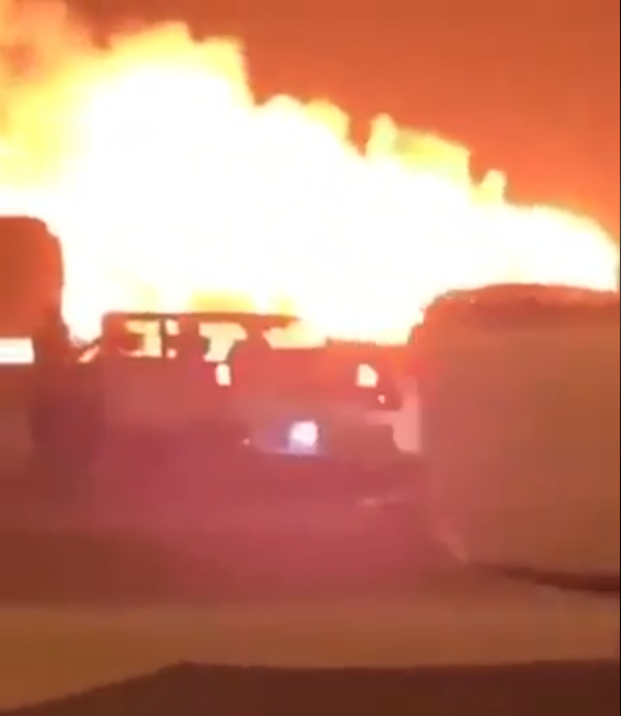 حريق في سوق الاعلاف بمنطقة حفر الباطن (فيديو)