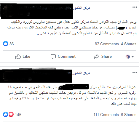عيادة الطبيب المصاب تطلب من مراجعيها أخذ الاحتياطات اللازمة